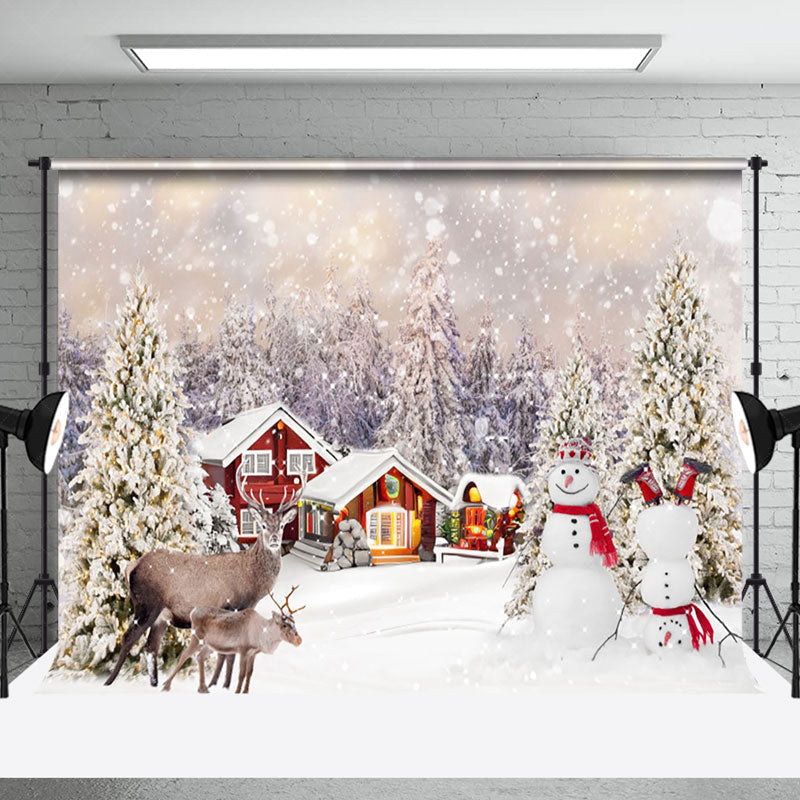 Lofaris Schneebedeckt Wald Elch Schneemann Weihnachten Baum Hintergrund