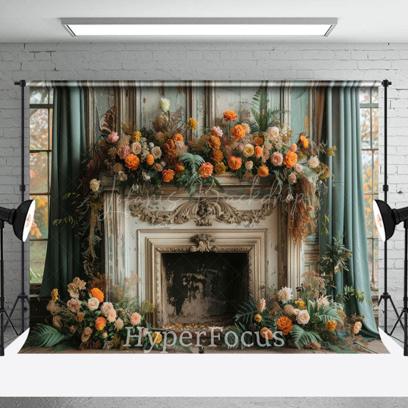 Lofaris Uralt Luxus Kamin Blumen Weihnachten Hintergrund