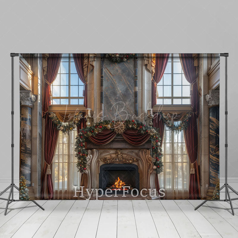 Lofaris Weihnachten Stimmung Kamin Fenster Landschaft Hintergrund