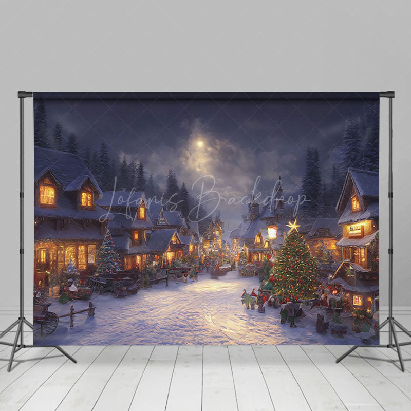 Lofaris Winter Dunkel Mond Nacht Stadt Schneebedeckt Weihnachten Hintergrund