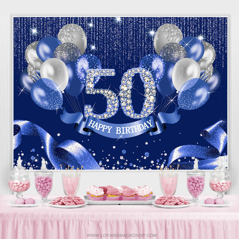 Marine Blau Ballon Band Glücklich 50 Geburtstag Hintergrund