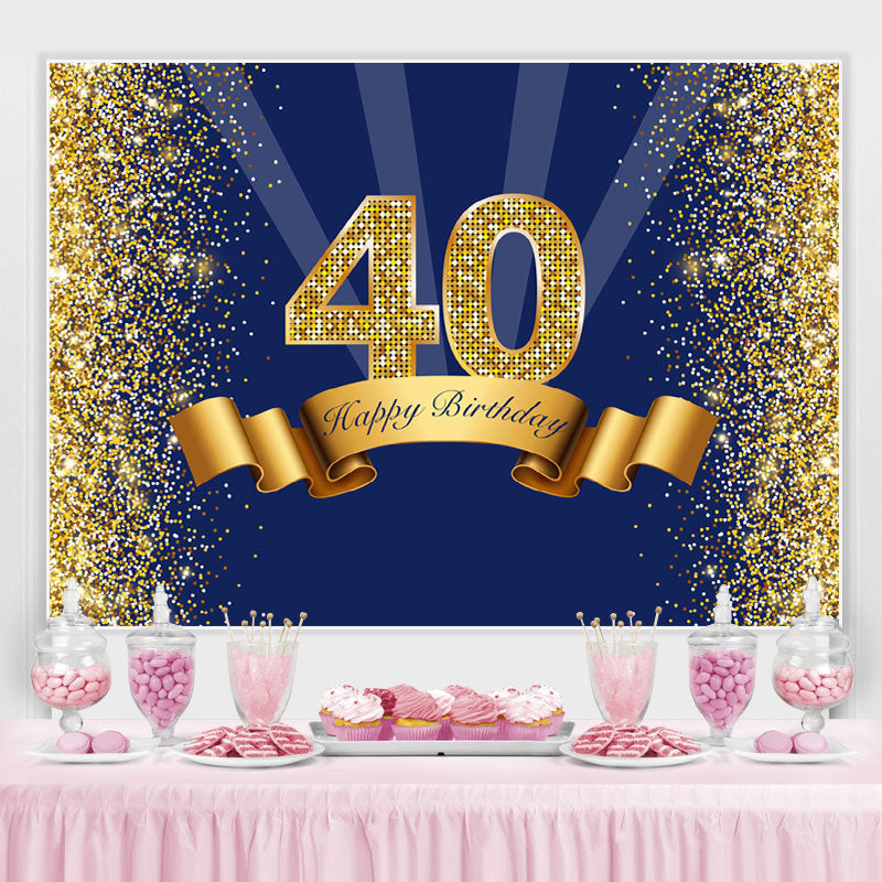 Marine Blau Golden Funkeln Glücklich 40 Geburtstag Hintergrund