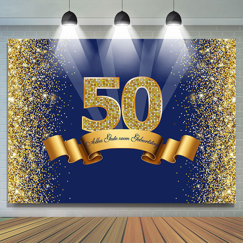 Marine Blau Und Gold 50 Geburtstag Hintergrund