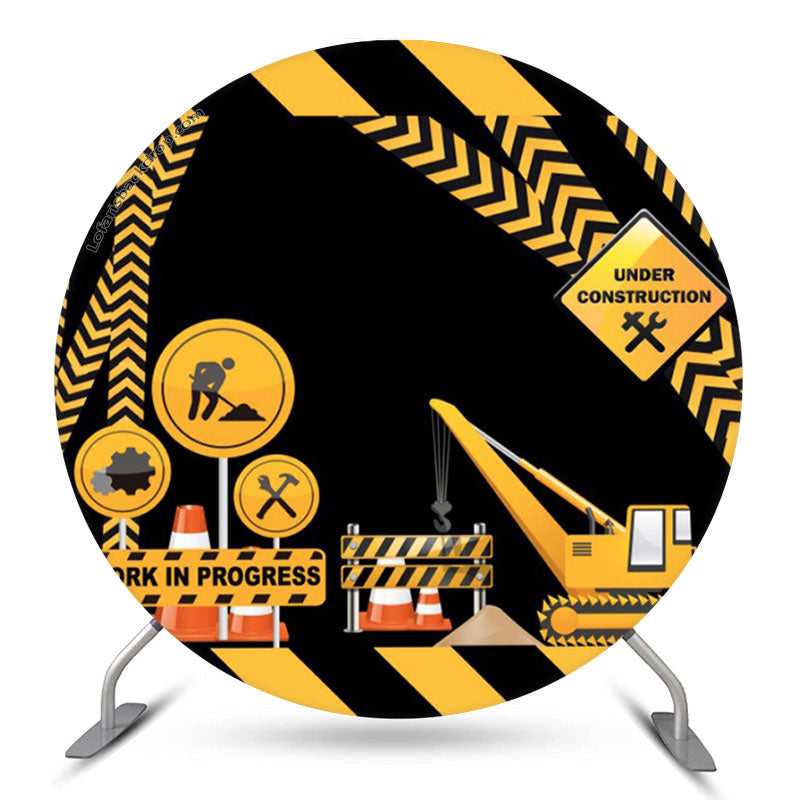 Maschinenbau Zeichen Gelb Schwarz Streifen Runden Hintergrund
