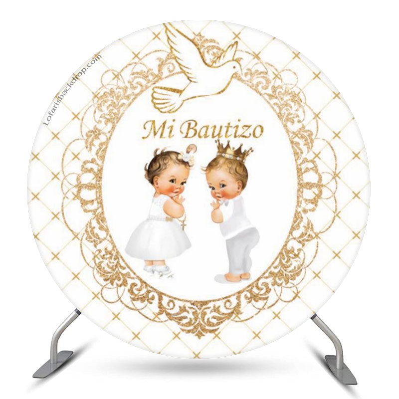 Mi Taufe Taube Weiß Gold Taufe Runden Hintergrund