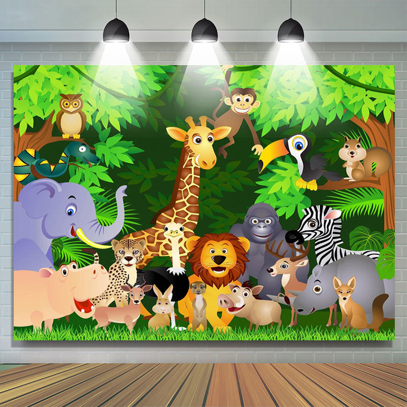 Natur Karikatur Tiere Glücklich Geburtstag Hintergrund Für Kinder