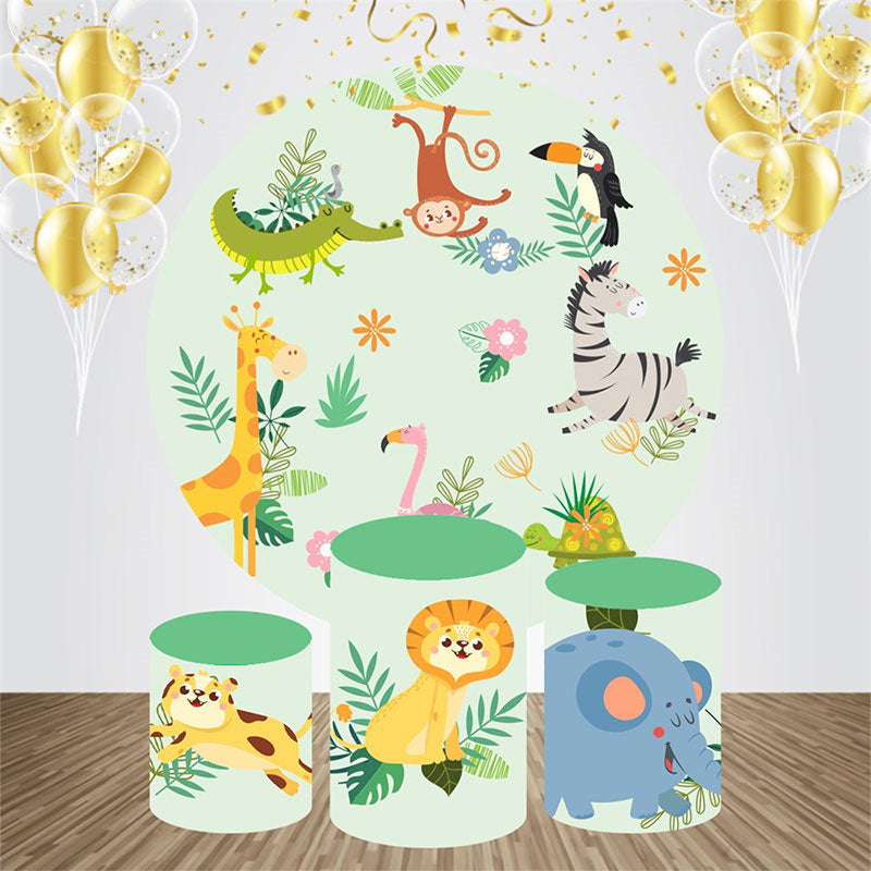 Niedlich Tiere Blätter Runden Baby Dusche Hintergrund Bausatz