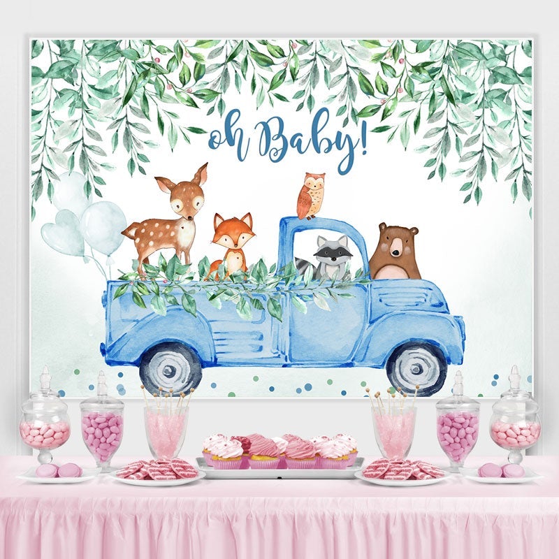 Oh Baby Blau Auto mit Tiere Junge babydusche Hintergrund