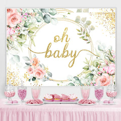 Oh Baby Rosa Blume Gold Baby Dusche Hintergrund Für Mädchen