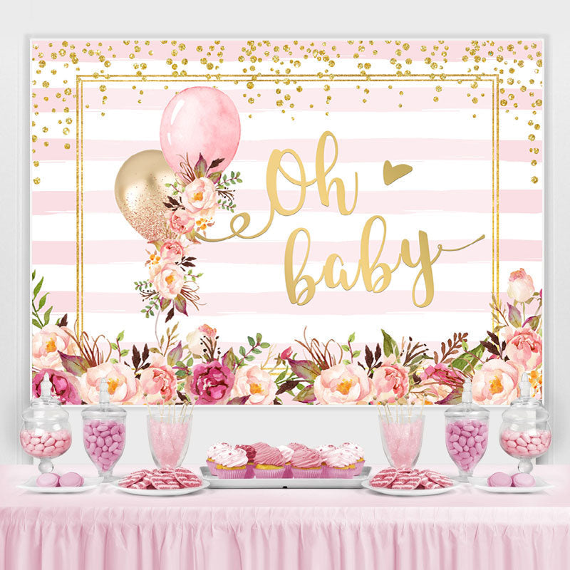 Oh Baby Rosa Blumen Ballon Streifen babydusche Hintergrund