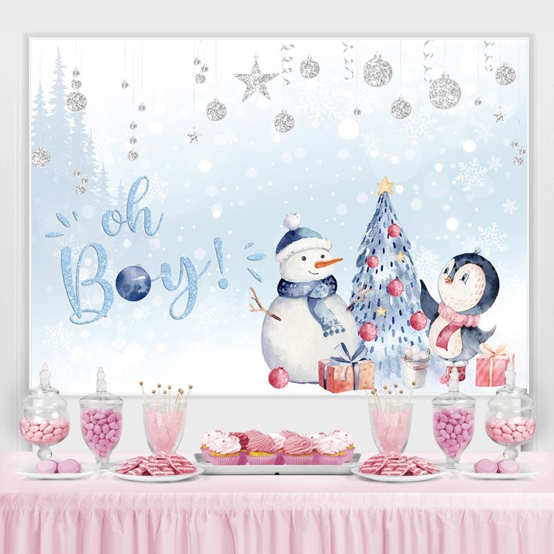 Oh Baby Schneebedeckt Pinguin Blau Hintergrund für babydusche