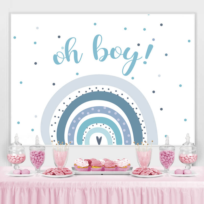 Oh Junge Blau Regenbogen Baby Dusche Hintergrund Für Party