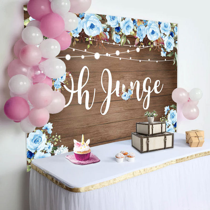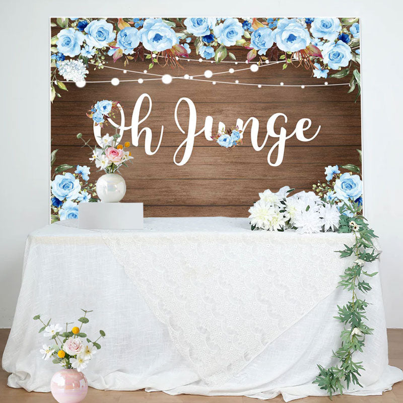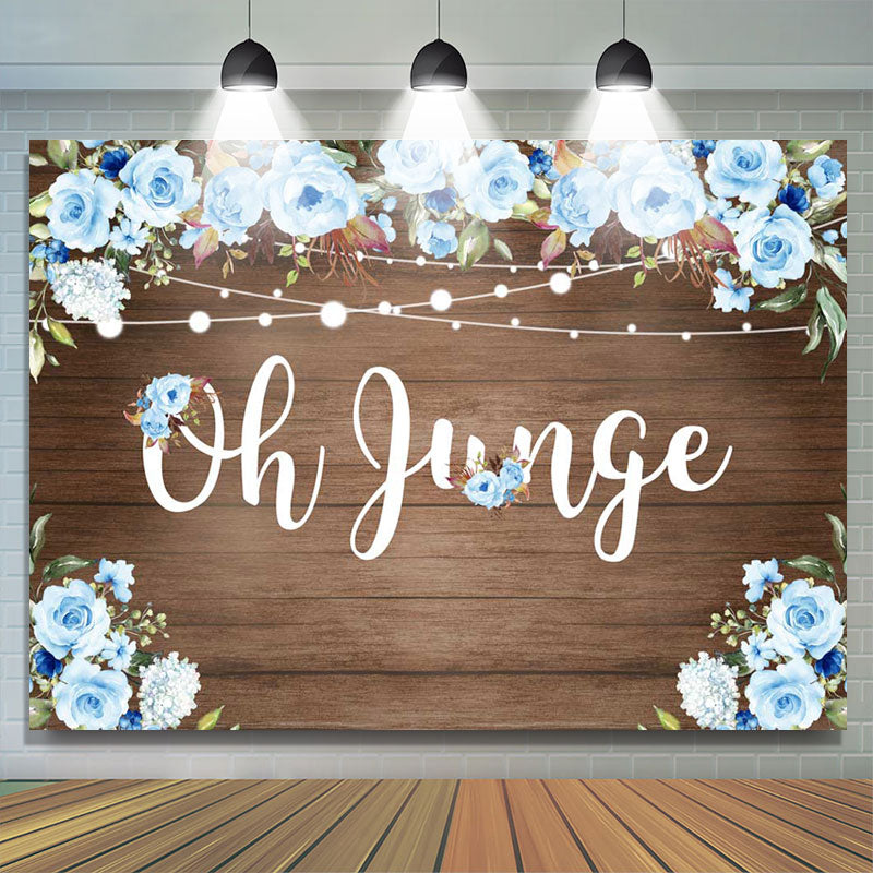 Oh Junge Blau Rosen Holz Baby Dusche Hintergrund