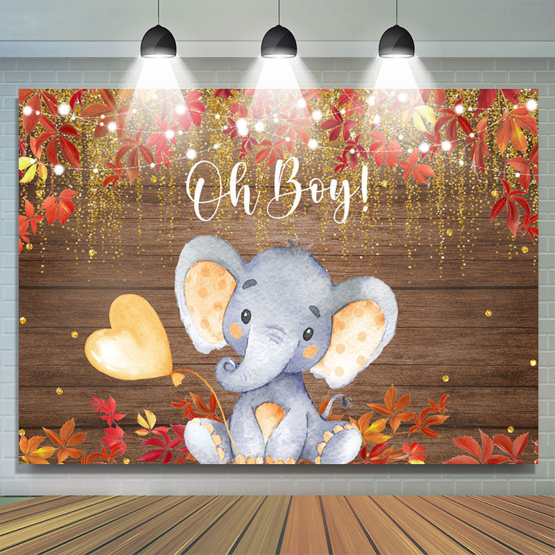 Oh Junge Elefant Rot Blätter Gold Funkeln babydusche Hintergrund