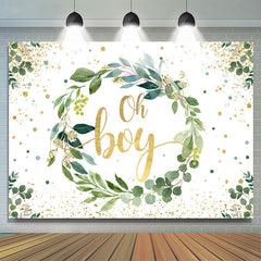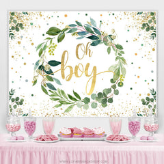 Oh Junge Grün Blätter Gold Funkeln Babydusche Hintergrund