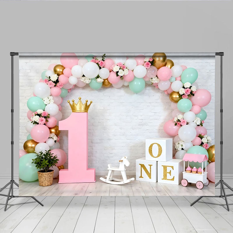Pastell Grün Ballon Erster Geburtstag Hintergrund Gold Krone Rosa 1 Schild Mädchen