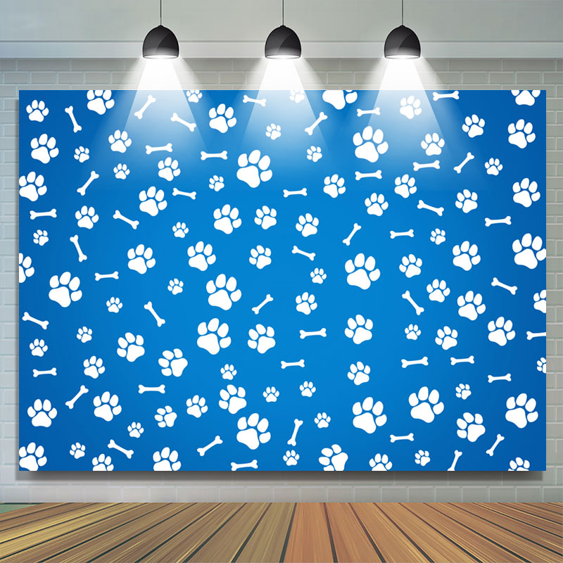 Paws And Bones blauer einfacher Hintergrund zum Geburtstag