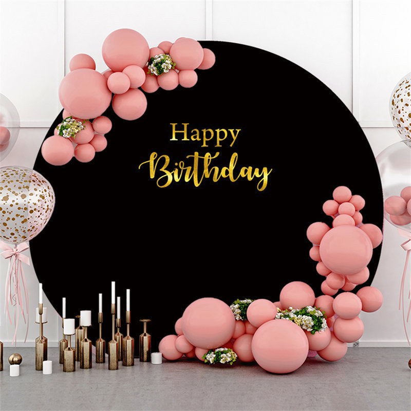 Rein Schwarz Gold Glücklich Geburtstag Runden Backdorp Für Party