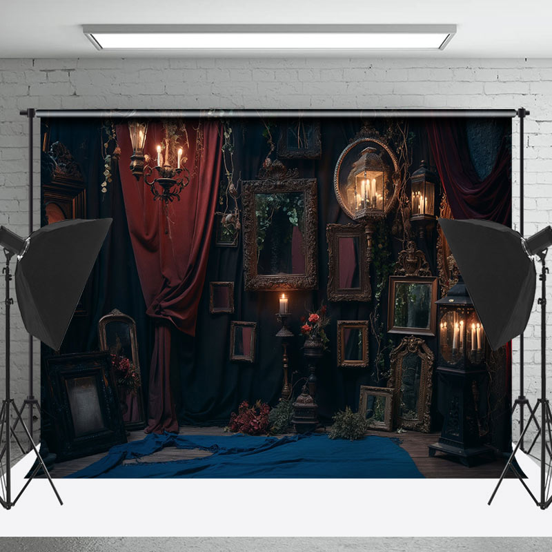 Retro Luxus Dunkel Zimmer Rot Vorhang Halloween Hintergrund