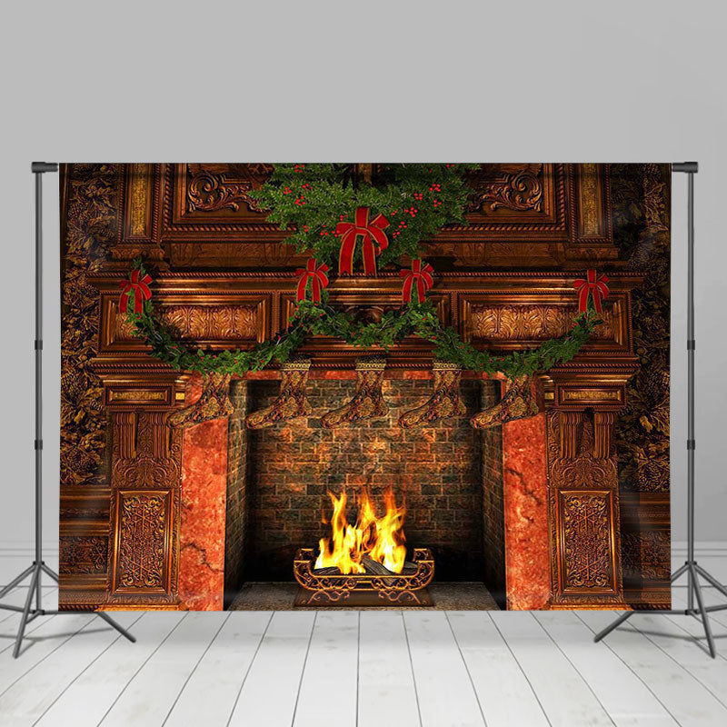 Retro Socken Kamin wunderschön Weihnachten Foto Hintergrund