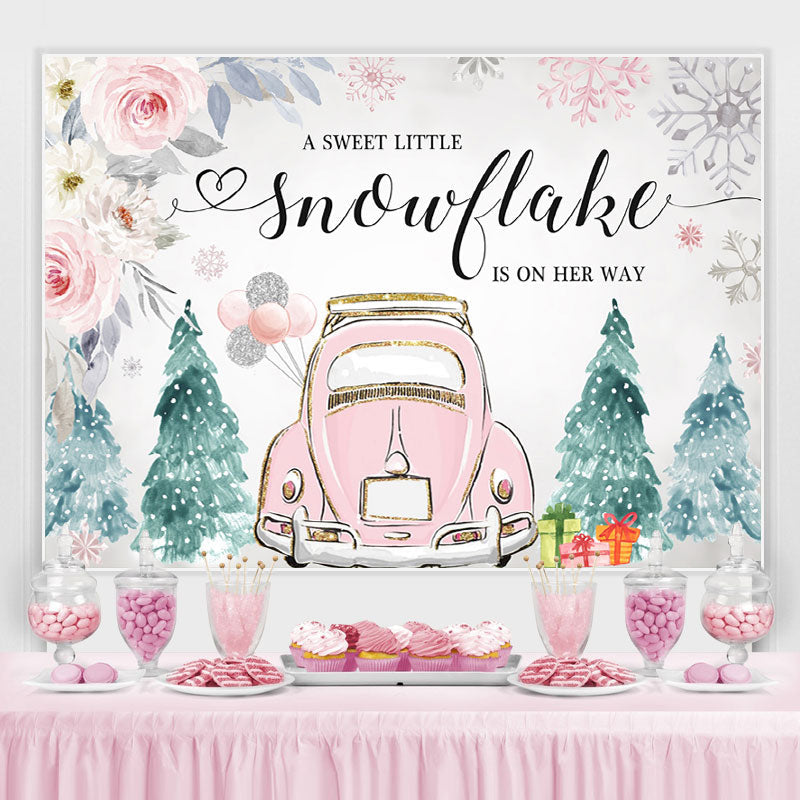 Rosa Auto Und Blumen Winter babydusche Hintergrund Mädchen