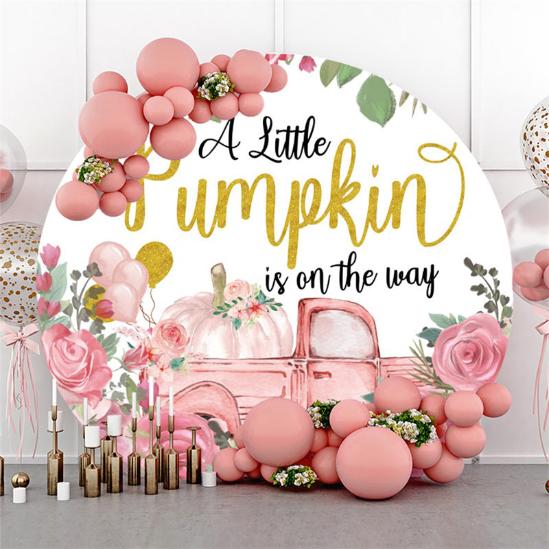 Rosa Auto Und Kürbis Blume Babydusche Kreis Hintergrund