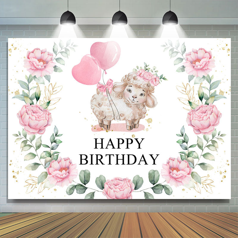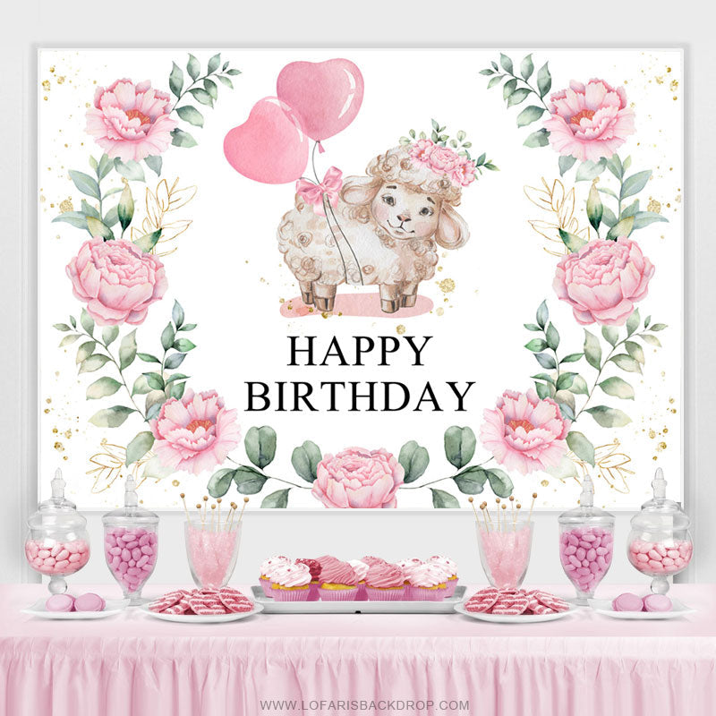 Rosa Ballon Blumen Und Wenig Schaf Geburtstag Hintergrund