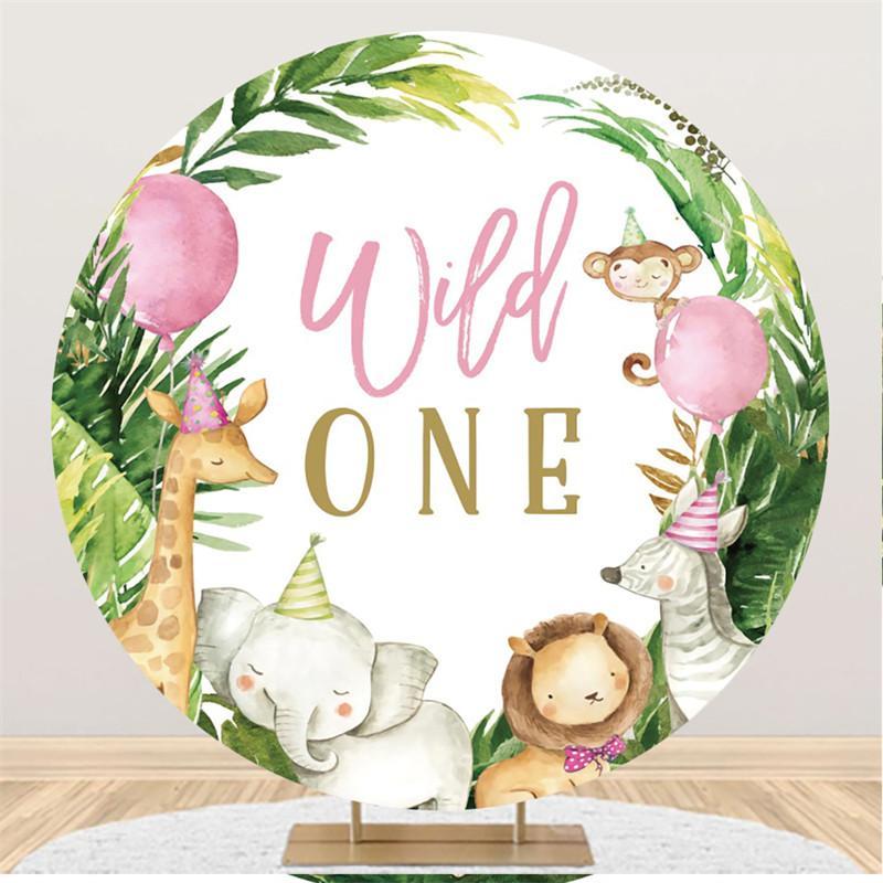 Rosa Ballon Tiere Wild Eins Geburtstag Kreis Hintergrund