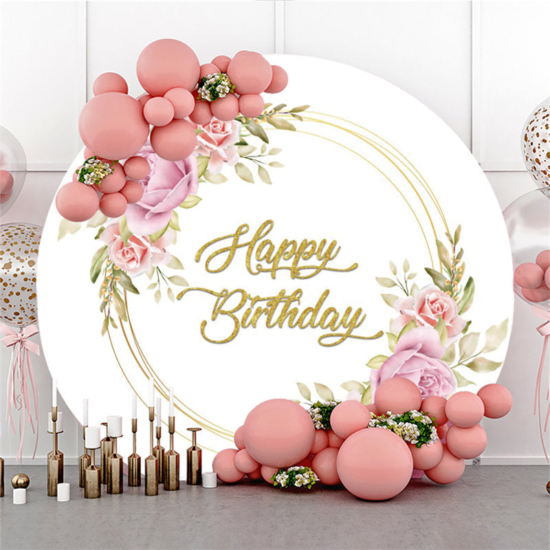 Rosa Blume Gold Glücklich Geburtstag Runden Hintergrund Für Party