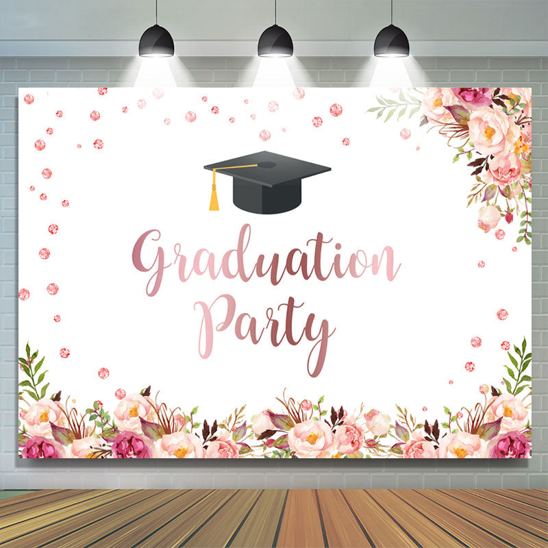 Rosa Blume Und Gilttter Punkt Abschluss Party Hintergrund