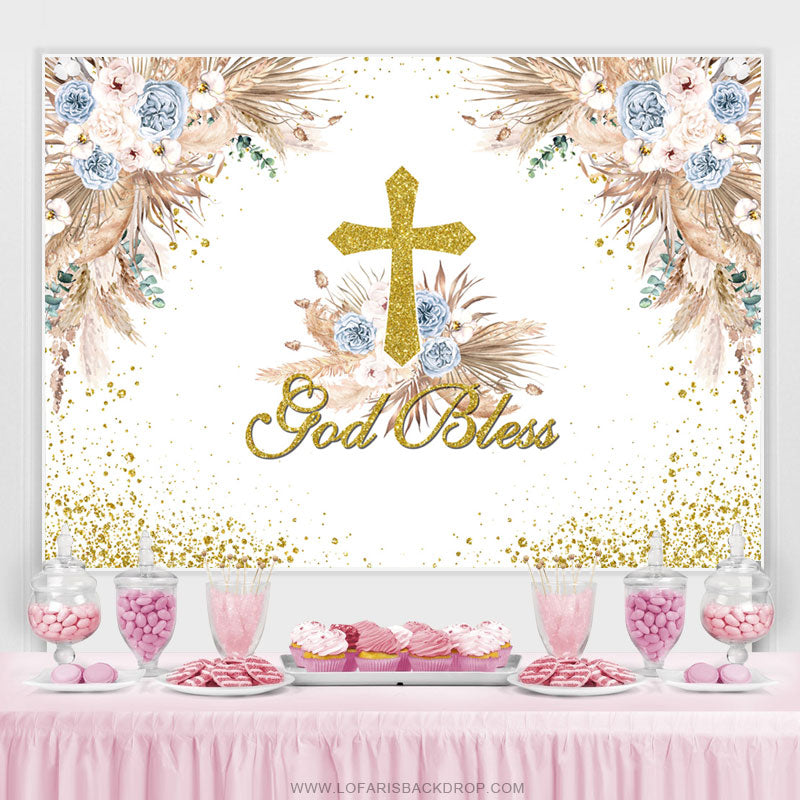 Rosa Blumen Funkeln Gott Segnen Boho Taufe Hintergrund