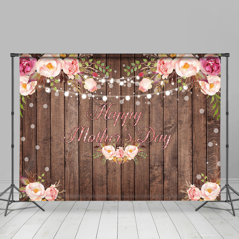 Rosa Blumen Funkeln Hölzern Glücklich Mütter Tag Hintergrund