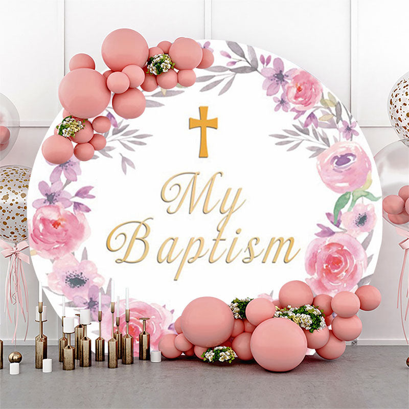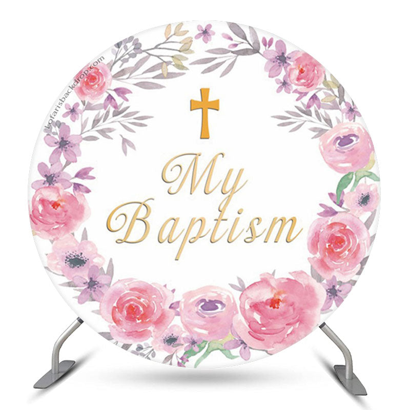 Rosa Blumen Kranz Mein Taufe Runden Hintergrund Abdeckung