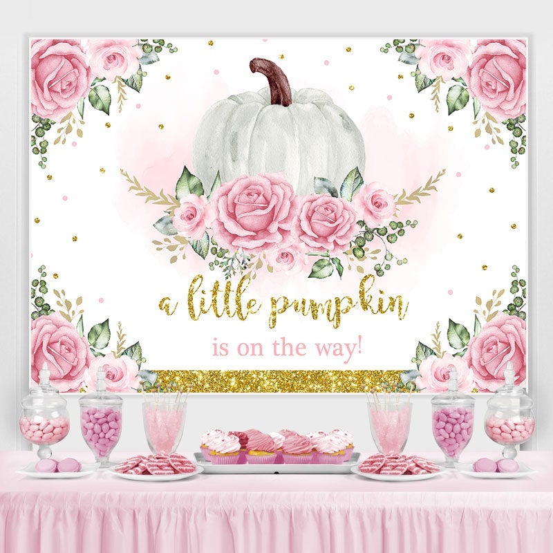 Rosa Blumen Kürbis An Der Weg Hintergrund für babydusche