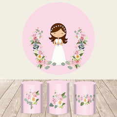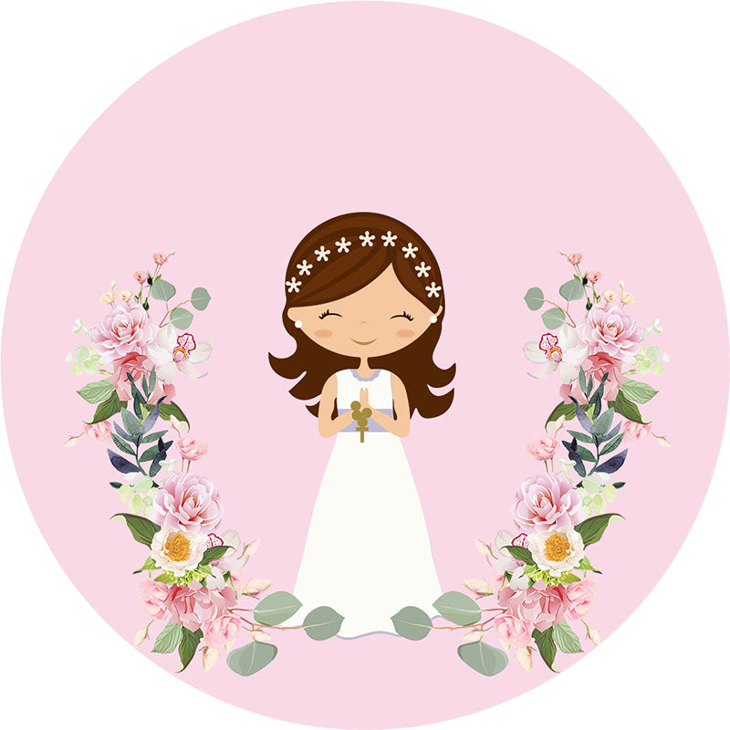 Rosa Blumen Mit Glücklich Mädchen Hochzeit Runden Hintergrund Bausatz