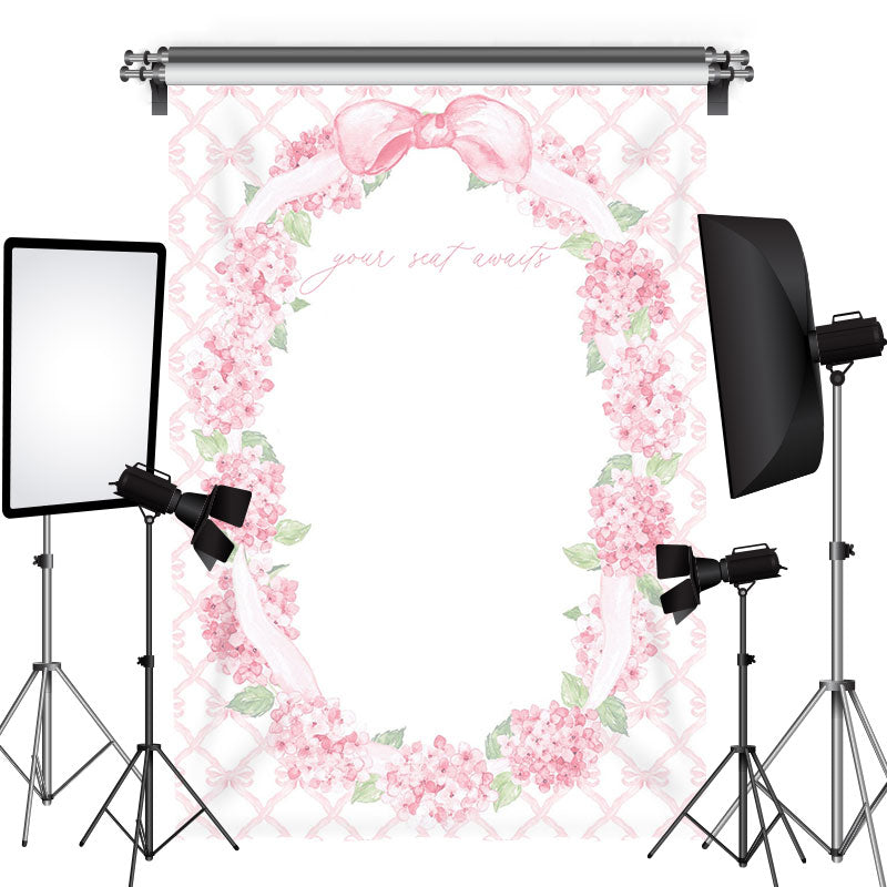 Rosa Blumen Schleife Grün Blätter Hochzeit Hintergrund