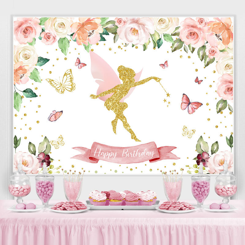 Rosa Blumen Schmetterling Fee Glücklich Geburtstag Hintergrund