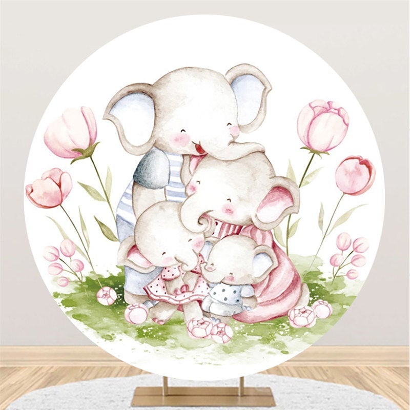 Rosa Blumen Und Elefant Familie Runden Baby Dusche Hintergrund