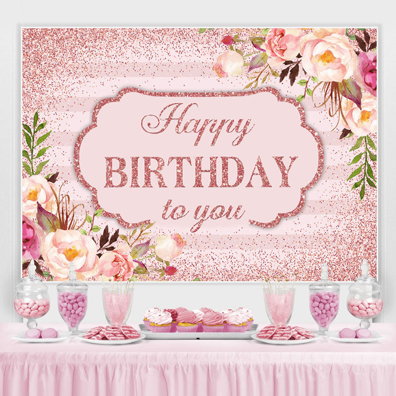 Rosa Blumen Und Funkeln Glücklich Geburtstag Zu Du Hintergrund