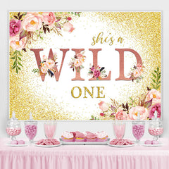 Rosa Blumen Und Gold Funkeln Wild Eins Geburtstag Hintergrund