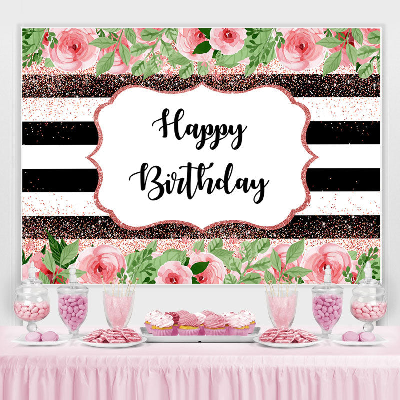 Rosa Blumen Und Grün Blätter Funkeln Geburtstag Hintergrund