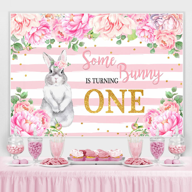 Rosa Blumen Und Hase Ist Drehen Eins Geburtstag Hintergrund