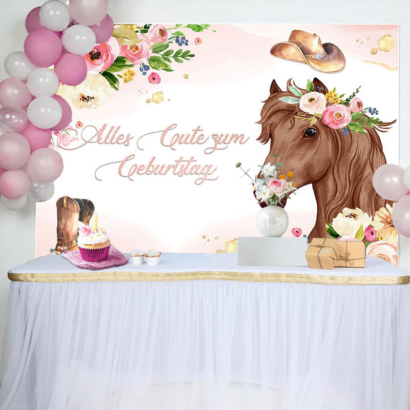 Rosa Blumen Und Pferd Cowboy Geburtstag Hintergrund