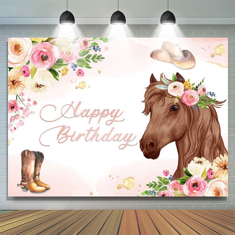 Rosa Blumen Und Pferd Cowboy Themenorientiert Geburtstag Hintergrund