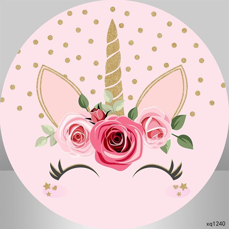 Rosa Einhorn Blume Kreis Glücklich Geburtstag Hintergrund