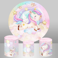 Rosa Einhorn Regenbogen Runden Glücklich Geburtstag Hintergrund