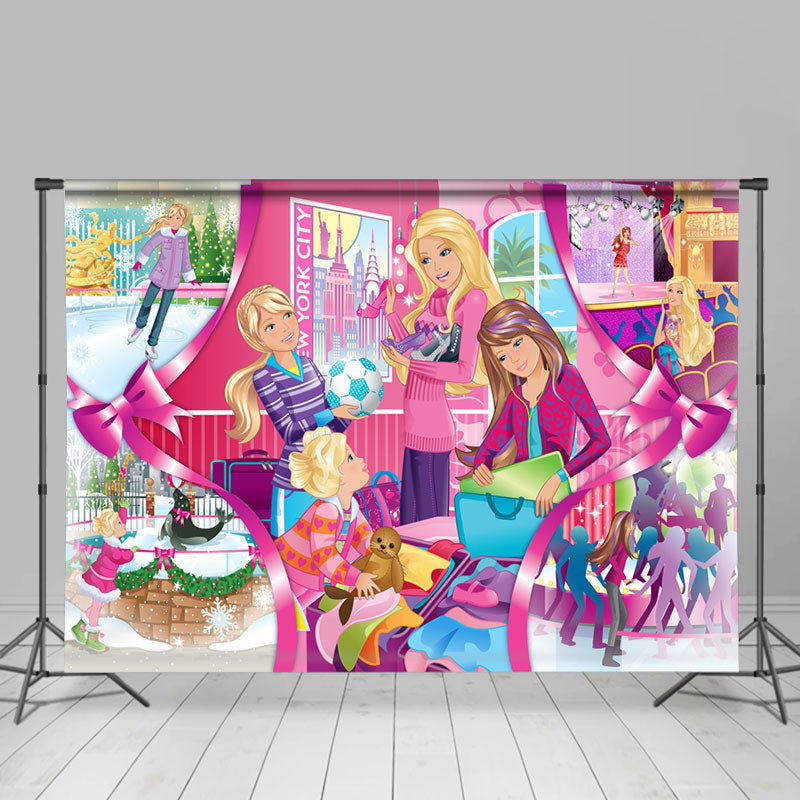 Rosa Frau Kind Tanzen Schneebedeckt Weihnachten Hintergrund