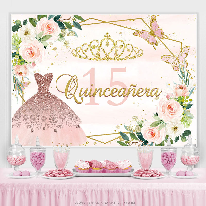 Rosa Gold Blume Schmetterling Glücklich 15 Geburtstag Hintergrund