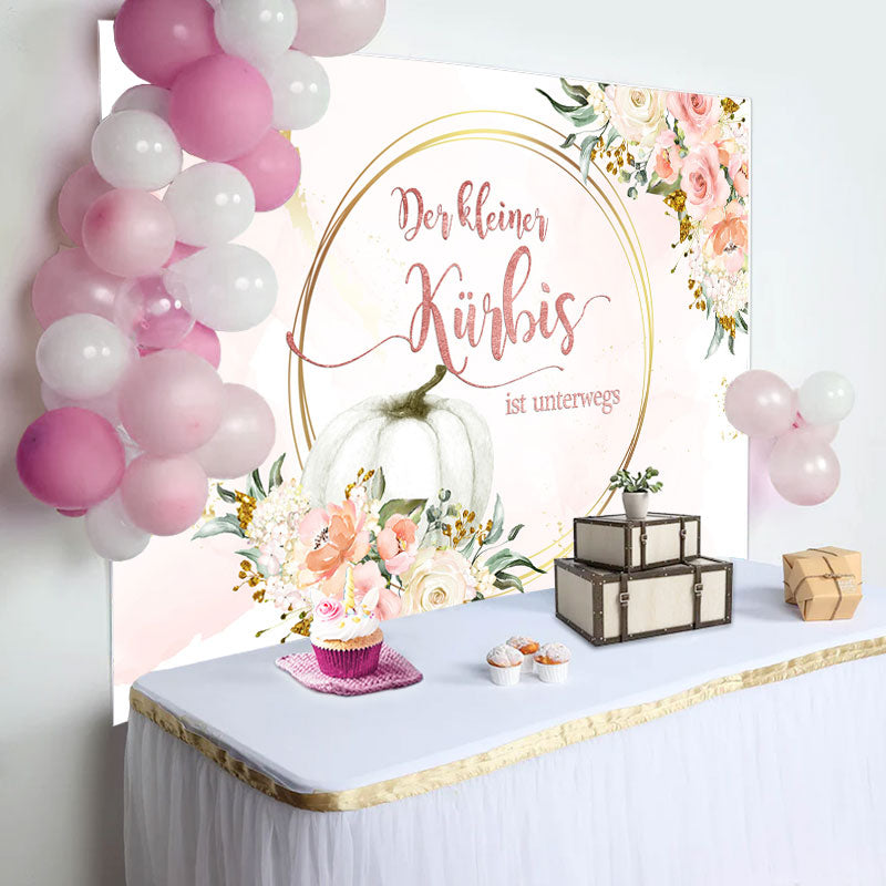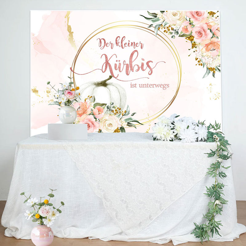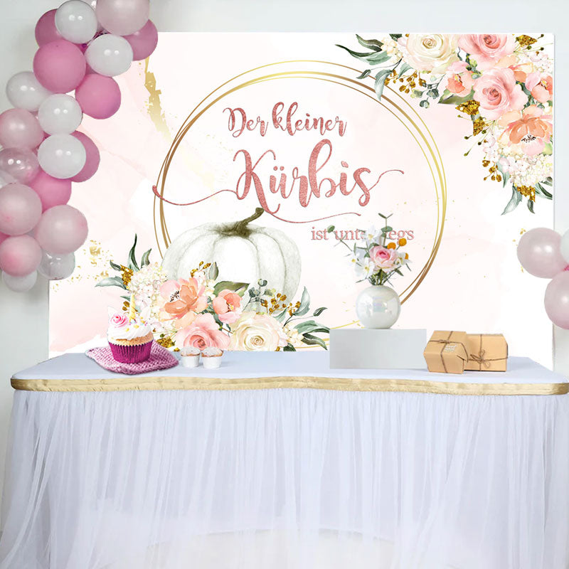 Rosa golden Blumen- Kürbis Baby Dusche Hintergrund