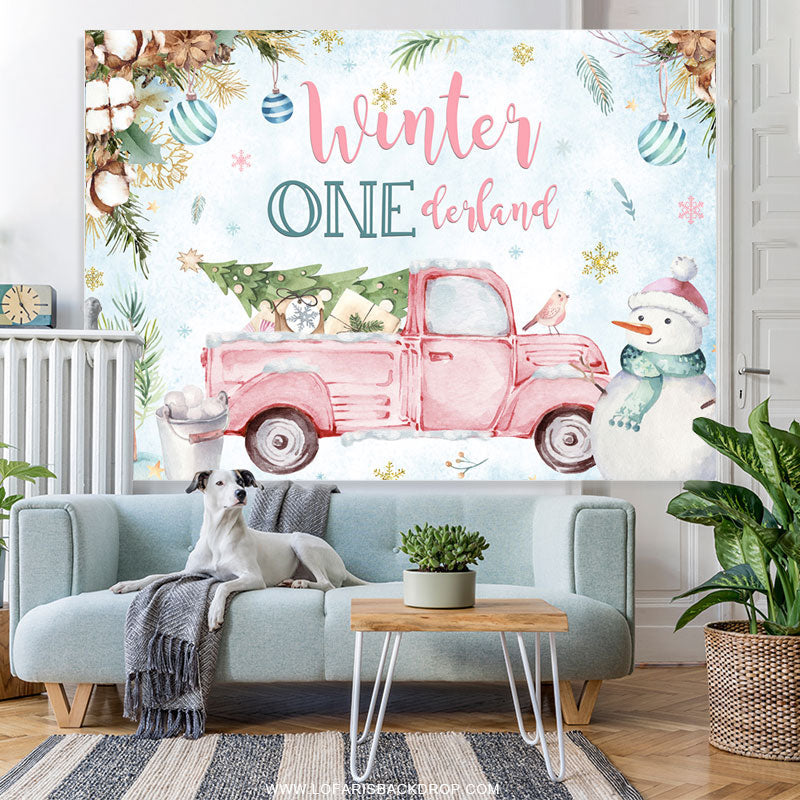 Rosa LKW Winter Onederland Blau Hintergrund Für Geburtstag